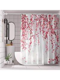 1/4 Stück Rosa Herz & Schleife Badezimmer Set, beinhaltet Duschvorhang, Badematte, U-förmiger Toilettensitzabdeckung, Toilettendeckelabdeckung, wasserdicht, Duschvorhang, modischer Vorhang, moderne Badezimmer Aufteilung, ohne Bohren erforderlich, Polyester, maschinenwaschbar Badezimmer Dekoration