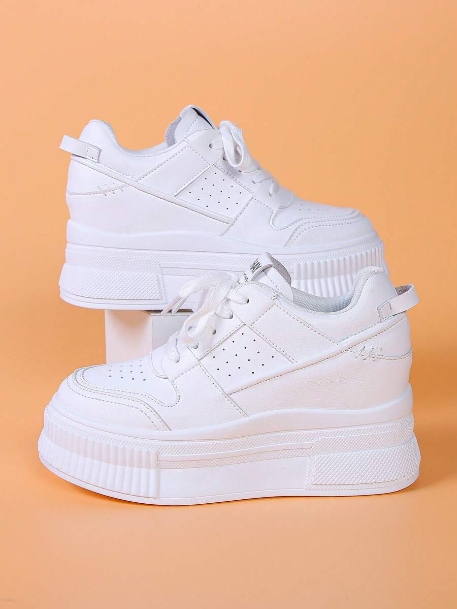 DareSee Kleine Schuhe zur Größenerhöhung für Frauen im Frühling und Herbst, Damen Keilabsatz Plateau Lässig Sportschuhe, weiß, modisch und vielseitig, rutschfest, wasserdicht, bequeme Freizeitschuhe für Musik-Festivals, Y2K-Festivals, Schulanfang, Herbst, Weihnachten, Weihnachtsgeschenke
