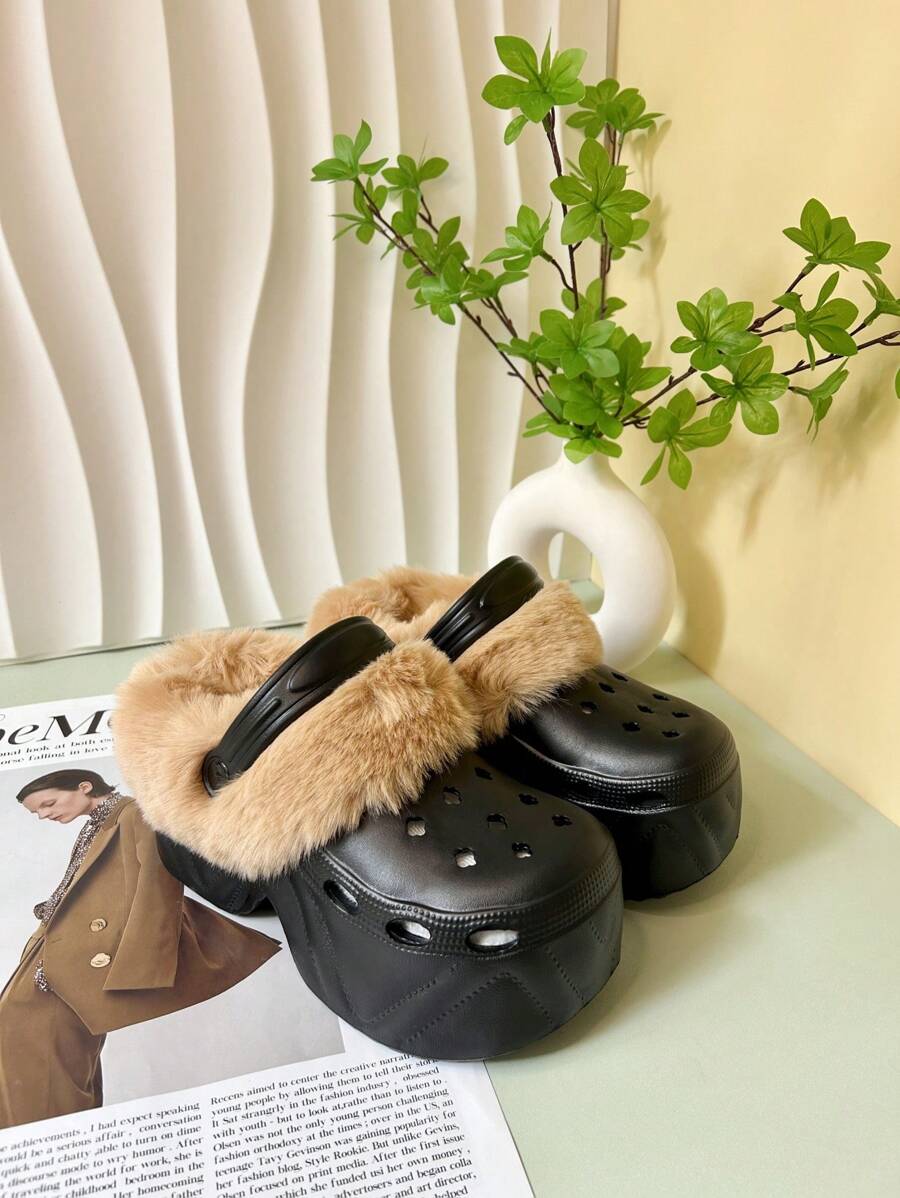 Einfarbige warme Hausschuhe, plüschige warm gefütterte Sohlen mit dicker rutschfester Sohle, fluffige bequeme Schuhe für den Winter, High Heel Sandalen