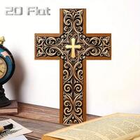 1 Vintage Holz Wandkreuz, Holz Wandkunst Kreuz, Heim- und Kirchendekoration, Priestergeschenk, geeignet für Wohnzimmer, Flur, Badezimmer, Büro, Café Dekoration, Feiertags-Dekoration, Größe 20 x 30 cm