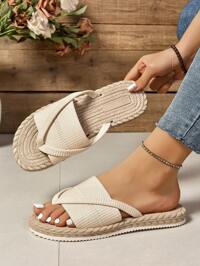 2025 Sommer Neue H-förmige Mode Flache Sandalen, Einfache Outdoor Strand Lässig Pantoffeln für Frauen, Einfarbig, Lässig, Elegant, PU-Leder, Strand, Resort, Büro, Zuhause, Outdoor, Party, Sommer #2 Bestseller
