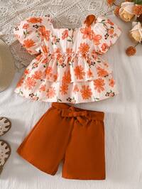 in Volantärmel T-Shirt-Sets für junge Mädchen