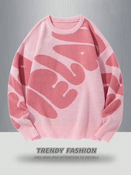 Manfinity EMRG Herren Pullover in Große Größen mit Buchstaben-Grafik, Rundhalsausschnitt, Langarm, Lässig, Herbst/Winter