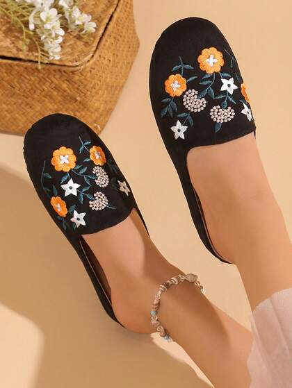 2025 Herbst/Winter Damen Mode Runde Zehenform Hausschuhe/Outdoor Pantoffeln, Keilabsatz, Komfortable Große Größen Schwarze Mutterschuhe