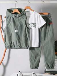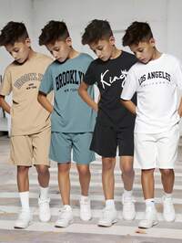 SHEIN 2 Stücke Outfitset für Tween Jungen: Weicher, bequemer, vielseitiger Kurzarm-Grafik-T-Shirt und Shorts mit Gummizug, geeignet für Frühling, Sommer, Herbst, Alltagstragen, Outdoor, Schule, Straße, Party und Zuhause #4 Bestseller